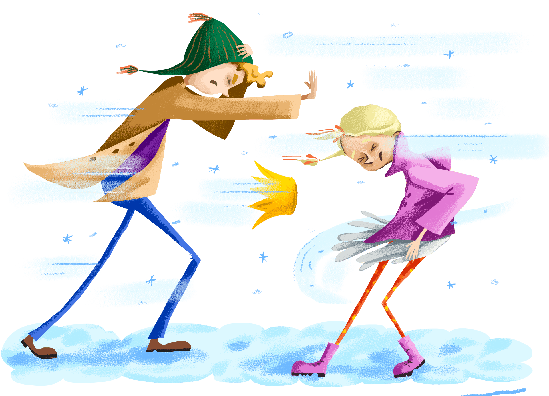 От такой активности покосилась палатка с бесполезным зимой мороженым, закачались дорожные знаки и светофор, а люди прижались друг к другу, чтобы их не сдуло. Агата вдавилась в ту самую бетонную стену-скалу, а я медленно скользил к ней по ледяной плитке.