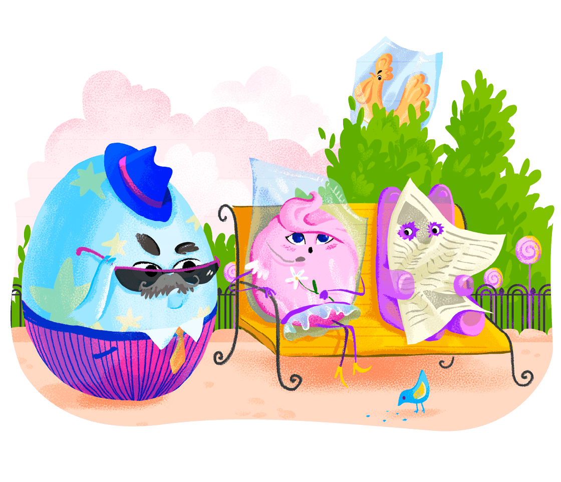 Пара прохожих конфет оглянулась на странную компанию. Мармеладка сладко им улыбнулась пухлыми губами и глянула на спецагентов. Тут из-за дерева шагнул леденец.