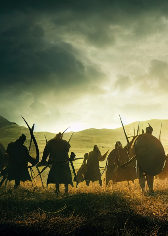 01Сминается раннее утроРассветным оттенком едваПод ласковый блеск перламутраНебесно-земельного шва.Пропали в нём звёзды ночные,Как многих веков огоньки,Что слишком от нас далеки,И в это же время простые.И ветер, как дальних земельЧудной несгибаемый странник,В такой нерадивый час раннийСвою же преследует цель.02Давно обомлевшие людиПроснулись с короткого сна,Что в этом пространственном чудеДала им большая луна.Оставили мягкие травыТепло их нехоженых спинНа фоне природных картин,Что ярки, но малость лукавы.И, быстро немного поевОт пищи вчерашних остатков,Все свежей походкой, но шаткойСобрались под птичий запев.03Дорож чуть поправил свой гашникИ туже его затянул,И вспомнил про дальние пашниИ ветра порожистый гул.Семак, проживая с ним рядом,Обычно работает с ним;Он тоже движеньем своимПоднялся с обычной отрадой.Обдали не меньше другихЛучи Велеслава с Вышаном,Заставив их в облике странномПроснуться под утренний штрих.04Крестьяне и воины в общемДовольны вполне и бодры,Как мыши, по ягодным рощамЧто бродят из тёплой норы.Бойцы, на посту что стоялиВсю ночь, не смыкая очей,Сказали, как там средь ветвейКочевники слово блуждали:«Их было нам не сосчитатьНи точно, ни даже примерно,Они ведь, то выглянут скверно,То спрячутся где-то опять».05Теперь Велеслав им на этоПромолвил без радости: «МнеСовсем не по нраву приметаЧужих на моей стороне.Как мне на земле тут отнынеСпокойно и вольно дышать?!И как для себя сознавать,Что в этой враждебной картинеРодное селенье моёС женой и детьми, с отчим домомСтоит под опасным уклономСтепное что гнёт вороньё?!».06В речной тишине без зазренийЕму Тихомир произнёс:«Здесь как никогда без сомненийСтоит над душой твой вопрос.Один только верный же выходЯ вижу в проблеме такой —Отряд нам создать нужно свой,Чтоб было спокойно и тихо.Скажу я, как воин, запасИмеющий лет за плечами,Спасти тех, стоит кто за ними,Не сможет никто кроме нас!».07Крестьяне все резко затихлиНа солнечном том берегу,Лишь мысли кружили, как вихри,Срываясь на полном скакуВ густые лихие пространстваВнутри их простой головы,Где отзвуки были слышныПривычным лицом постоянства.И голос большого ДнепраБыл чётко безветренно слышенВ такой тишине, что потишеСтоячей воды у костра.08И парой высоких мгновенийПод ветром мыслительных путИз всех их былых представлений,Что вольно дышать не дают,Особое что-то промчалосьМеж взором стоящих людей.Сказал Велеслав же: «ЗатейТаких очень смелых осталосьНе так уж и много. И силНам столько набраться откуда?!Ведь редко нас радует чудо,Воочию кто б ни просил.09Вы тут как-нибудь, но поймите,Крестьяне обычные мы.Никто уж из нас-то не виделВблизи полноценной войны.Всё наше оружие – вилыИ мой дровосечный топор,Что с давних рассеянных порДля жизни мне сватает силы.Всю жизнь мы в лесах и поляхС природой излишней воюем;Ленивым я будь обалдуем,То жил на одних бы бобах».10«Всё верно, мои золотые!По-своему все вы сильны.Открылись для вас бы впервыеВсе тайны обычной войны» —Из стареньких уст ТихомираПрорвались с лихвою слова,И кверху его головаПодняла свой взор над их миром,Что в это мгновенье застылВ людском непомерном обличьи,Собой песнопения птичьиЗакрыв, как и мысли закрыл.11И, небо окинув, продолжилИм речь говорить: «В мире томПростым я был пахарем тоже,Отец же простым кузнецом.Но мир словно перевернулсяОднажды другой сторон
