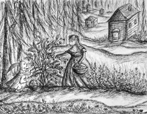 Пока Таптыжка находился в школе, Марфа брала самую большую плетёную корзину и отправлялась собирать малину, чернику, землянику или ежевику. Часто Василиса-краса помогала ей, тогда дело шло быстрее и веселее. Подруги болтали, а корзина незаметно наполнялась спелыми ягодами.