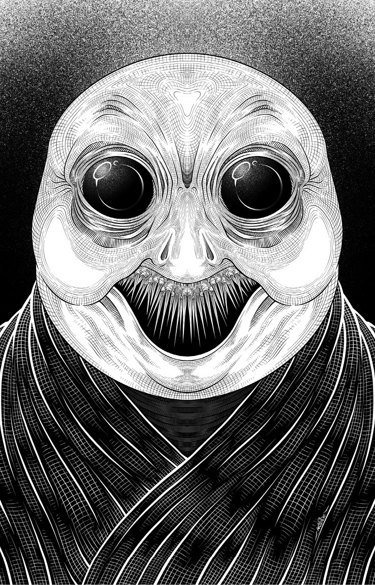 Не знаю, какие внутренние силы удержали меня от истошного вопля! Я увидел младенческое лицо, на котором пылали яростные, нечеловеческие глаза – они были абсолютно круглой формы и лишены белков. Черного цвета, блестящие, они напоминали угли, но вместе с тем я ощущал их бешеный взор. Так глядели бы, наверное, глаза, состоящие из одного сплошного зрачка, – пришло мне на ум.