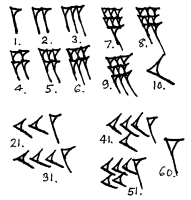Вавилонская Система Б представляет собой астрономическую таблицу (обычно называемую эфемеридами), показывающую движение Луны между знаками Зодиака; на приведенной фотографии воспроизведена часть этой таблицы для 104–102 гг. до Р. Х. Даже начинающий ассириолог сразу обнаружит, что таблица содержит только столбцы чисел, записанные клинописьюз. Числа от 1 до 60 записываются в клинописной системе настолько просто, что им может научиться любой ребенок; ну а уж образованному и умеющему считать греку для усвоения всей системы понадобилось бы примерно четыре минуты. Но вот что замечательно: для чтения и этой, и многих других астрономических таблиц, собранных в классическом труде Поздневавилонские астрономические таблицы, для понимания их смысла и для перевода их на греческий – для всего этого надо лишь освоить следующие группы знаков: