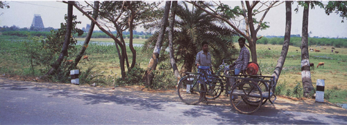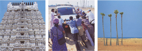 Above left to right One of the many temples at Kanchipuram. Bogged down at Muttukadu.