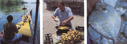 Opposite India’s opening batsman, Lords 2012… Below left to right Floating down the backwaters. Cooking on the beach. At the fish market.