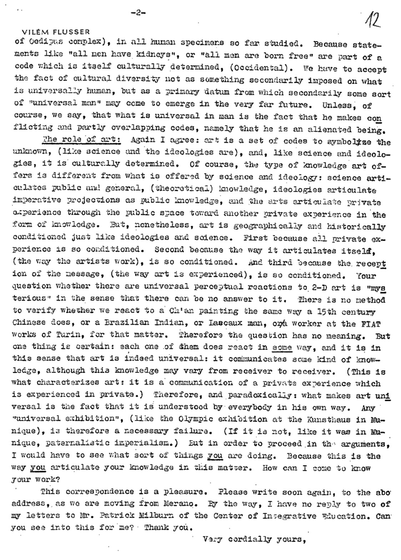 Письмо Вилема Флюссера художнику Дэну Стейси.