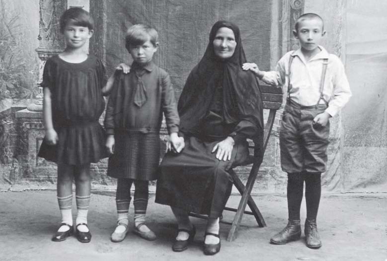 My mother Ethel with her younger sister Pesha, their grandmother Rose, and my mother’s cousin Freika.
