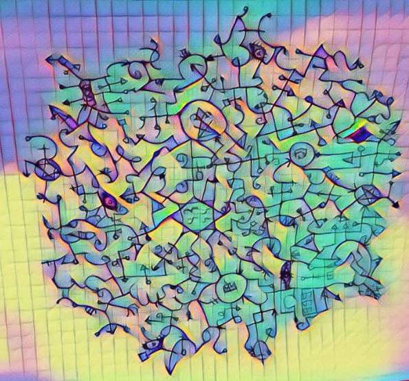 Тут в рамках были отрывки из разного рода писаний: Коран арабик, Тора на иврите, Библия на латыни, книги по герметизму, гематрии и каббале. Как в той песне – на полке иконки и пентакли, на столе Кроули и открытка с котом. Нечто более древнее и опасное – Некрономикон. Конечно же, это был не он. В голове Алекса была каша. Всё спутанно, всё переплетено.