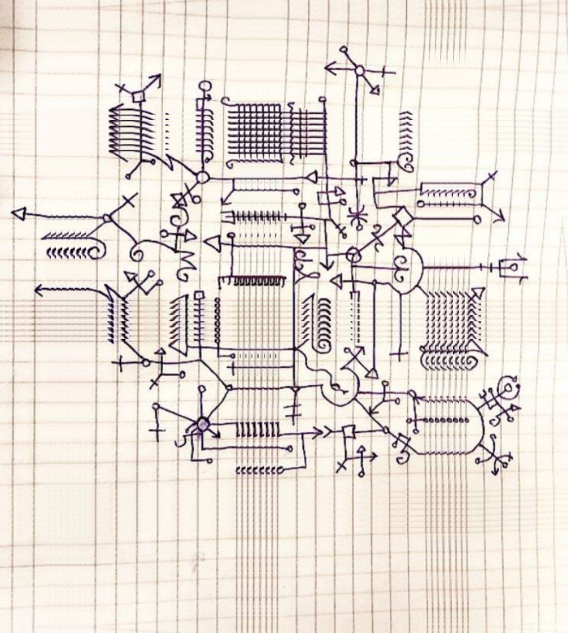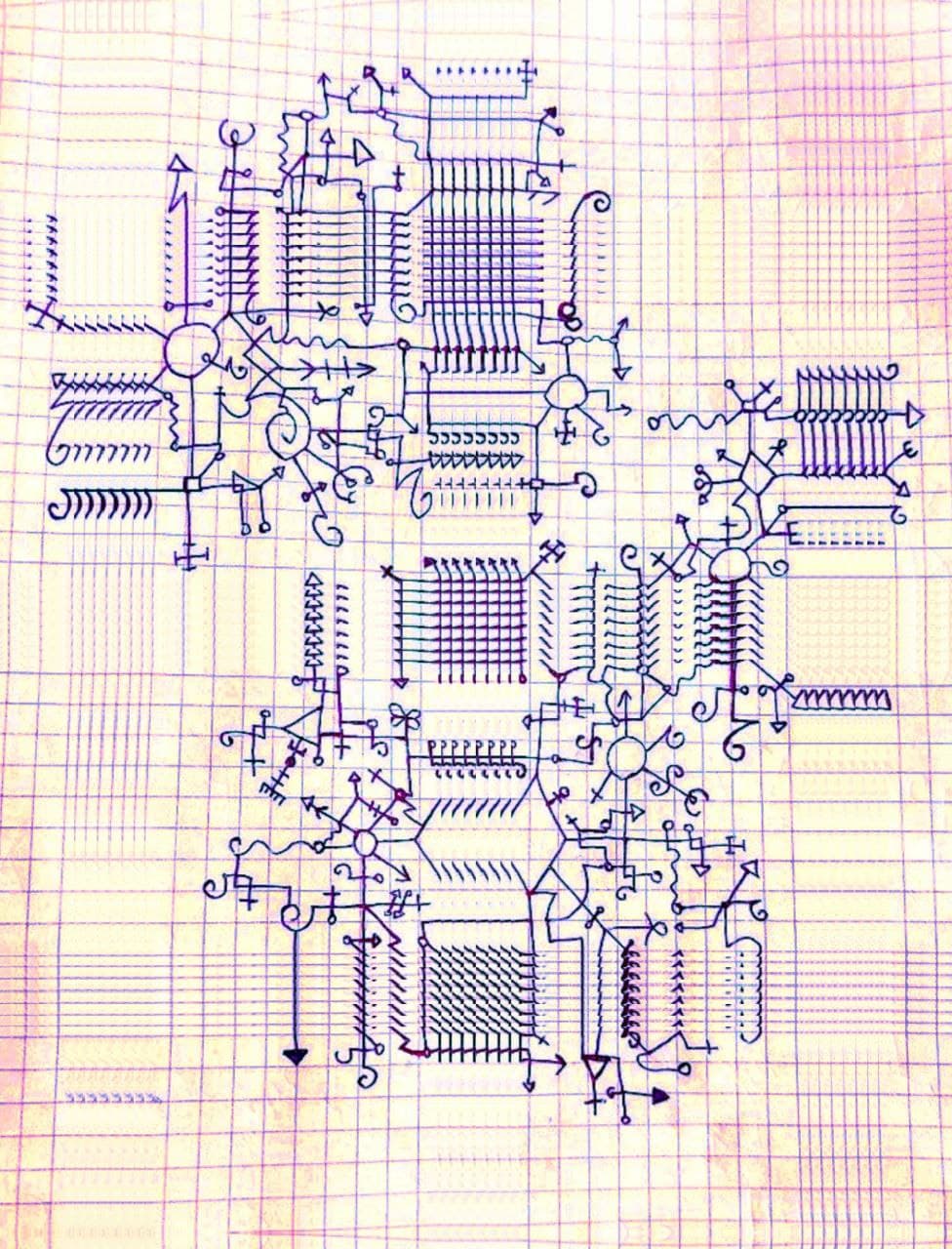 Комната была пепельного цвета. В серой штукатурке и необработанном бетоне. Провода кругом. Экраны, цифры, буквы, символы не похожие ни на что, повторяющиеся, но всё же разные. По деревянным полочкам, небрежно прибитым к рейкам, стояли разного рода идолы и божества.