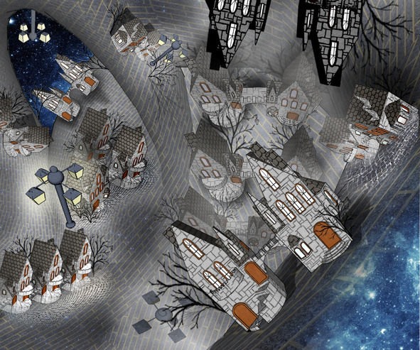 Дома обступают – величественные дворцы, исполинские замки, анфилады, колонны, бельведеры, бельэтажи; угрожающе поводит башнями горделивая ратуша, рядом извиваются причудливые ступени какого-то дворца…