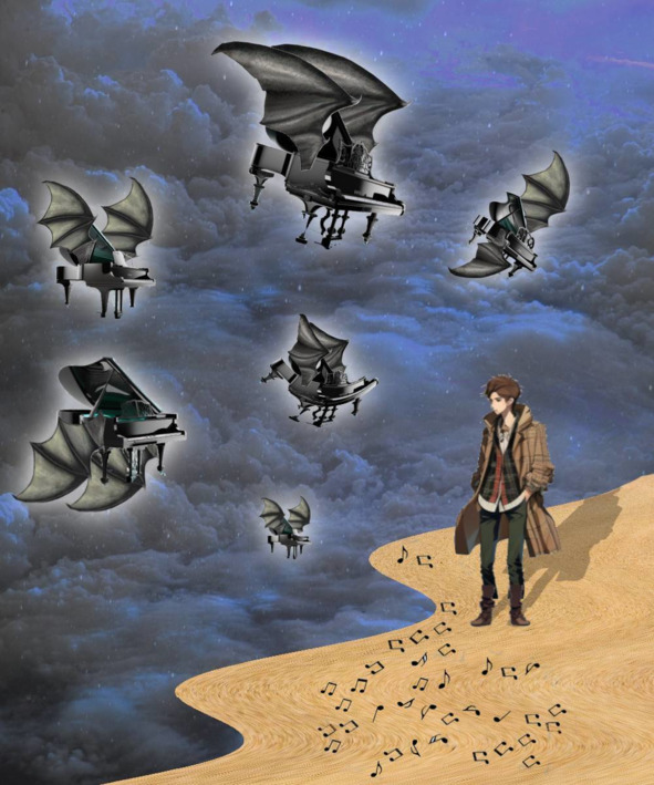 Кло сидит у пианино под винтовой лестницей, перебирает ноты, когда две, это восьмая, когда четыре, это шестнадцатая, а когда три, это что, повторяются, три, три, три… Ф-ф-ф-ф-ф-ш-ш-ш!