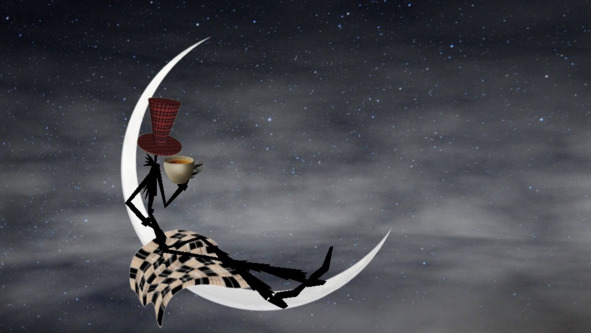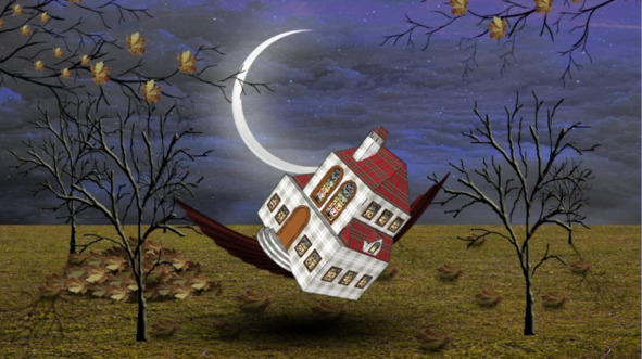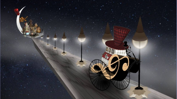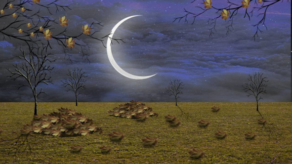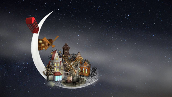 Над крышами поднимается месяц. Памкин-холл снова думает, как это хозяин собирался ехать на месяц, ведь туда не проложены рельсы.