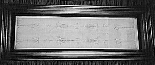Рис. 1.14. Современная фотография Туринской плащаницы в ковчеге. Это, конечно, не ковчег XVII века, а современный, изготовленный из пуленепробиваемого стекла. Фотография взята из Интернета.
