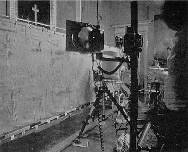 Рис. 1.19. «Члены группы из 40 ученых, участников «Проекта Исследований Туринской Плащаницы» в течение пяти дней обследовали Плащаницу… На фото: проводится фотографирование в ультрафиолетовых лучах» [47], с. 13.