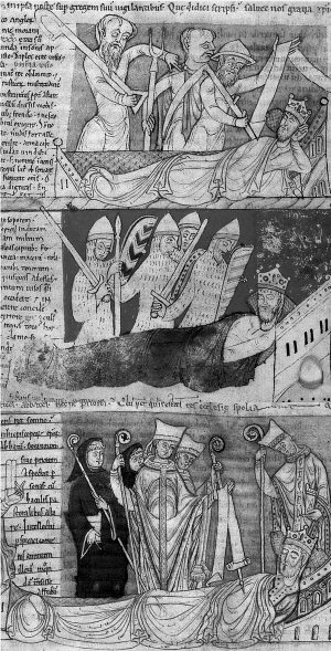 Отдельные следы прежнего кастового деления в Великой Империи сохранились и после ее раскола в XVII веке. Например, как отмечают сами историки, – «в структуре парламента Англии, который делился на палаты лордов (знать), духовенства и общин. Примером преломления этой классовой модели… является сон английского короля Генриха I, описанный Джоном Вустерским… Все три сословия объединились против него (короля – Авт.)» [160], с. 100. См. старинную миниатюру на рис. 1.9. По-видимому, ранее кастовое деление общества в Великой Империи было достаточно жестким. Но с течением времени границы сословий (каст) стали постепенно размываться.
