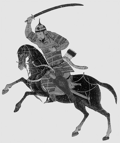 Напомним наше соображение по поводу происхождения слова «татары». Вероятно, оно произошло от славянского ТОРИТЬ (дорогу), ТОРЮ, прокладываю путь. Летописные татары – это казаки-ордынцы. Они, в частности, являются предками и современных российских татар. В эпоху великого = «монгольского» завоевания казаки=татары действительно ТОРИЛИ, прокладывали пути в разные концы тогдашнего населенного мира. Создавали Империю. На рис. 1.10 приведено старинное изображение «монгольского» всадника.