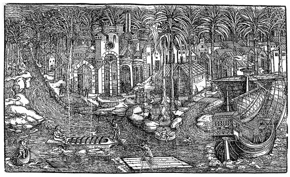 Рис. 1.14. Немецкая гравюра якобы 1527 года, изображающая высадку Васко да Гама в Индии, в Калькутте. Взято из [160], с. 261.