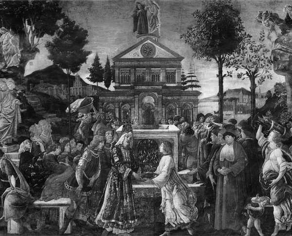 Рис. 1.44. «Искушение Христа». Сандро Боттичелли. Якобы около 1479–1482 годов. Фреска. Ватикан, Сикстинская капелла. Взято из [730:2], с. 384, илл. 403.