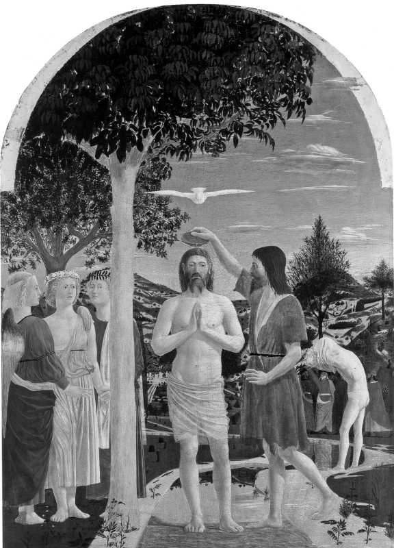 Рис. 1.46. «Крещение». Пьеро делла Франческа. Якобы 1459–1460 годы. Взято из [40:1], с. 54, илл. 43.
