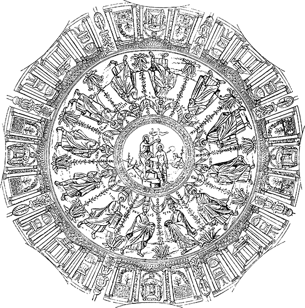 Рис. 1.47. Крещение Христа Иоанном Крестителем. Мозаика купола баптистерия в итальянской Равенне. Взято из [169:0], с. 372, илл. 321.