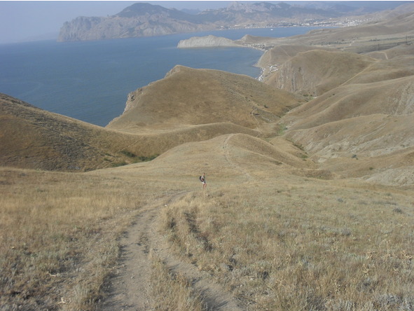 Итак, мы находимся на перевале горы Тепе-Оба, которая является крайней восточной точкой Главной крымской горной гряды. Спускаемся вниз и вот мы уже в самом поселке. Кстати, если вы внимательно смотрели в окно, то могли заметить, что на склонах горы много ежевики и любители сбора ягод могут увезти с собой пару банок варенья. Спеет она в конце августа. Во все остальное время только колется, ну и еще царапается.