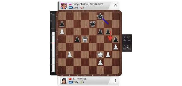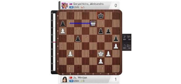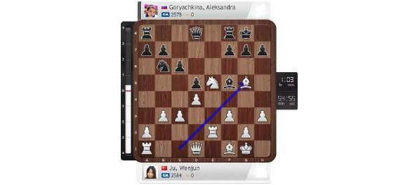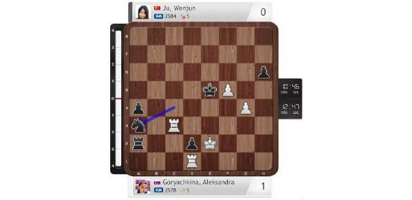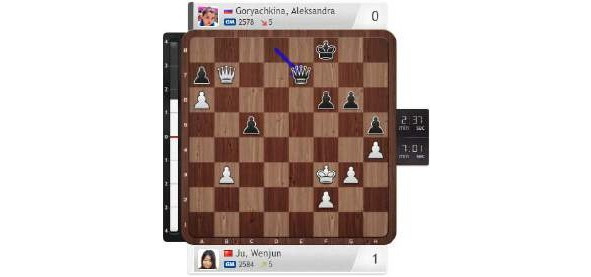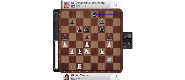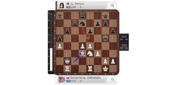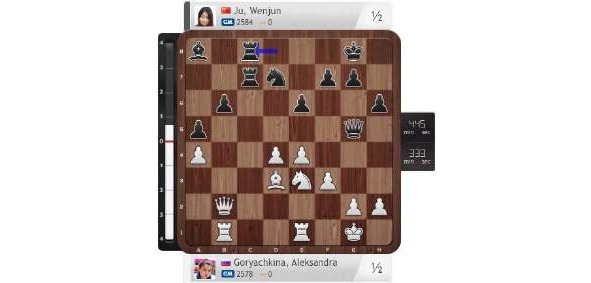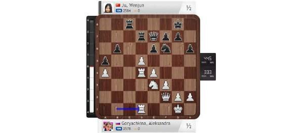 Состоялась 4-я партия матча между чемпионкой мира Цзюй Вэньцзюнь (Китай) и претенденткой на титул чемпионки мира Горячкиной Александрой (Россия).
