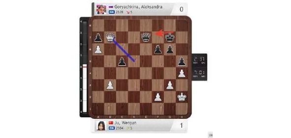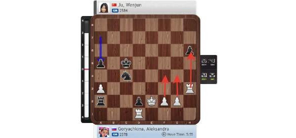 Но Цзюй Вэньцзюнь видно не решилась на этот ход и сыграла пассивно 23. Лdс8, что дало Александре продолжить игру.
