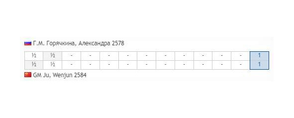 Вторая партия матча между чемпионкой мира Цзюй Вэньцзюнь (Китай) и претенденткой Александрой Горячкиной (Россия) завершилась миром на 40-м ходу черных.