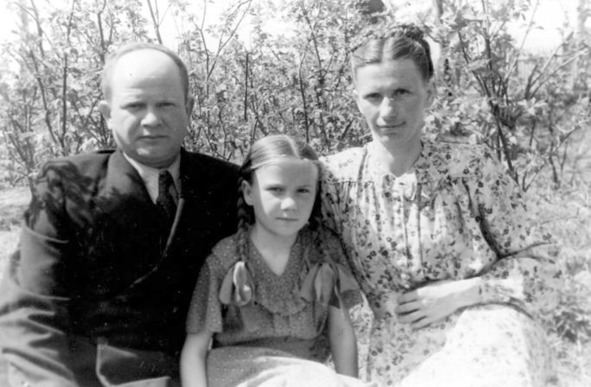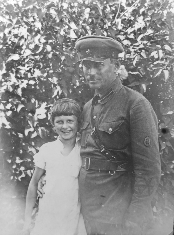 Отец мой был очень деловой, энергичный. Мама говорила, что его часто переводили для налаживания работы в том или ином месте. Когда мне было 5—6 лет отца перевели начальником политотдела при МТС в Тростенце. Мы жили в деревне Галиново под Минском. Там с нами жили мамины родители. Мама работала машинисткой в политотделе, носила чёрную кожаную куртку и красную косынку – по моде того времени.