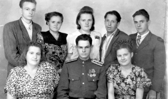 Фото 15. В первом ряду – Анна Малаховская, Лев Длусский и его жена; во втором ряду – Ромуальд Длусский и его жена, Тамара Длусская и её муж, Налик Длусский