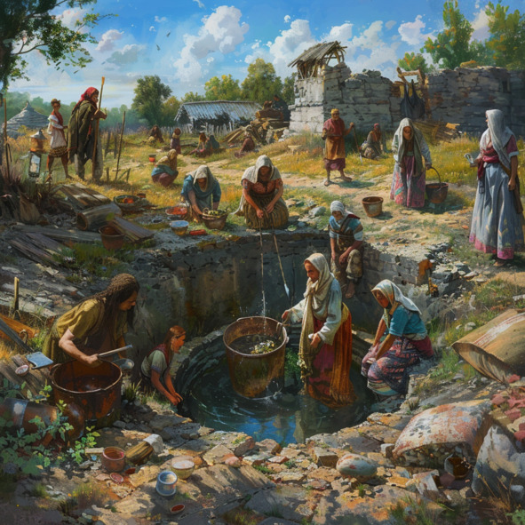 В лесах, где теней широкие длани,Городецких племен скелеты и прах,Мещерских болот в лесной глухомани,Погрязших в любовных грехах.Мужчины-рабы среди женских костровЛежат перед казнью вверх животом.Арианские дамы – рязанские окцыУсердно и долго копают колодцы,Умели надежно они мастерить.Чтобы сакральным оплотомСтроительных жертв разместитьПо смертельным пустотамЧтоб крепче стояла стена крепостная,