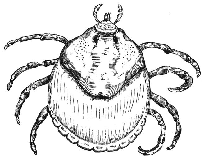 Всякому сельскому жителю, часто прогуливающемуся со своей собакой по лесу и зарослям, известно крошечное существо, которое, вися на ветвях кустов, караулит свою добычу, будь то человек или зверь. После того как это существо, величина которого не достигает и двух миллиметров, низринется на жертву и напьется ее крови, оно набухает до размера горошины (илл. 1).