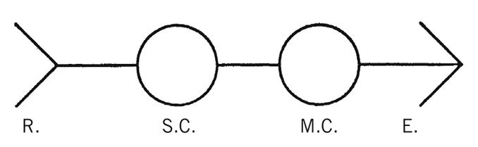 Условные обозначения: R. – рецептор; S. C. – сенсорные клетки; M. C. – моторные клетки; E. – эффектор.