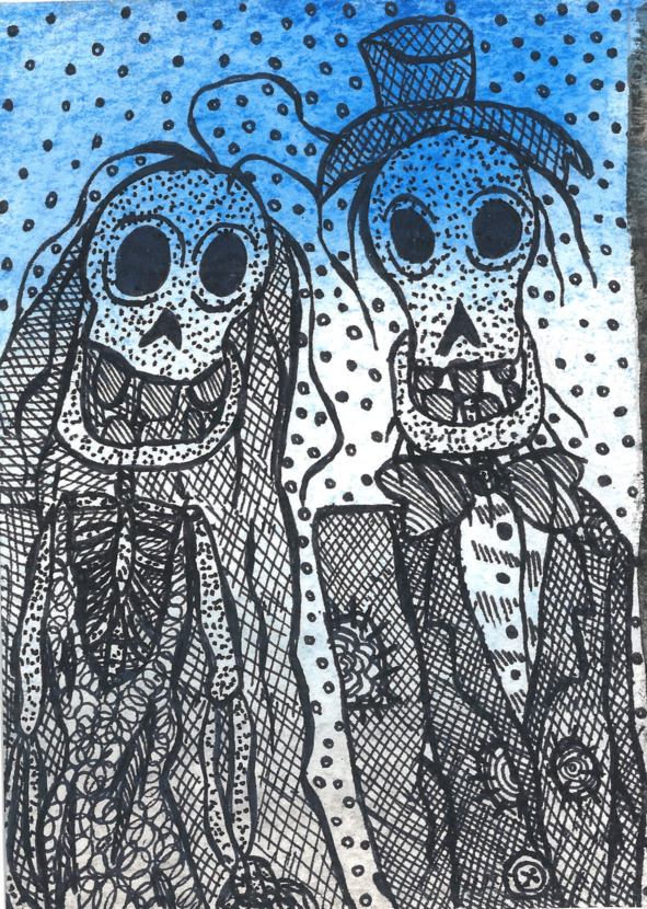 Это было в три утра,В тёмном переулке.Наконец пришла пора.Загремела гулкоТьма повозок и карет,И везде в упряжкеКрупной лошади скелет,Золотые пряжки.Этой ночью мертвецыЕхали на свадьбу,Всё звенели бубенцы —Вот не опоздать бы!И улыбки на лицеВечно у скелетов —Много будет там шутов,Магов и поэтов!Сеть для ловли рыб – фата,Платье из лохмотьев.Кучер весь лихой сидит,Натянув поводья.Как невеста хороша!Он на месте млеет,Созерцая, не дыша,Призрачную фею.А жених-то хоть куда!Весь костюм в заплатах,Вся истлела борода,Взор, как у пирата,И сверкает и горит,Вертится в глазницеГлаз единственный. ТравыВдет пучок в петлицу.Мы на свадьбе мертвецовВесело гуляли,Пили с плесенью вино,Шляпы ввысь бросали.Хоть на этом, хоть на томСвете, хоть в ненастье,Хоть при солнце, хоть в грозуВам желаем счастья!