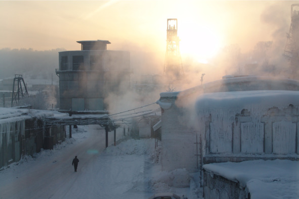 Зима, шахта «Юбилейная», поверхностный комплекс…