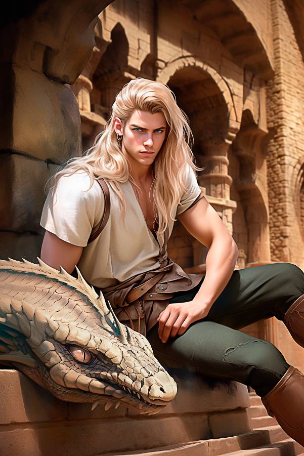 С приступочки сводчатой арки на девушку взирал крепко сложенный длинноволосый блондин. Мальчишка еще, но уже не юнец. Голова его песочно-болотного змия свесилась с той же приступочки. Змий сонно поглядывал на Раечку.