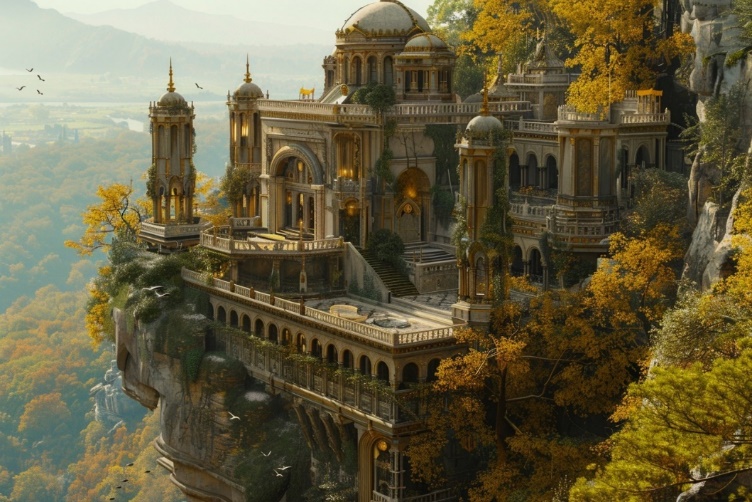 Посмотреть было на что. Огромнейшее плато, защищенное стеной из кварца и засаженное плодовыми деревьями. Деревья не могли скрыть блистательного дворца с сочно-зелеными стенами и золотистой купольной крышей. Башни по всему периметру венчались шатрами с флагом на шпиле. Зелено-желтые полотнища охотно трепал вездесущий ветер.