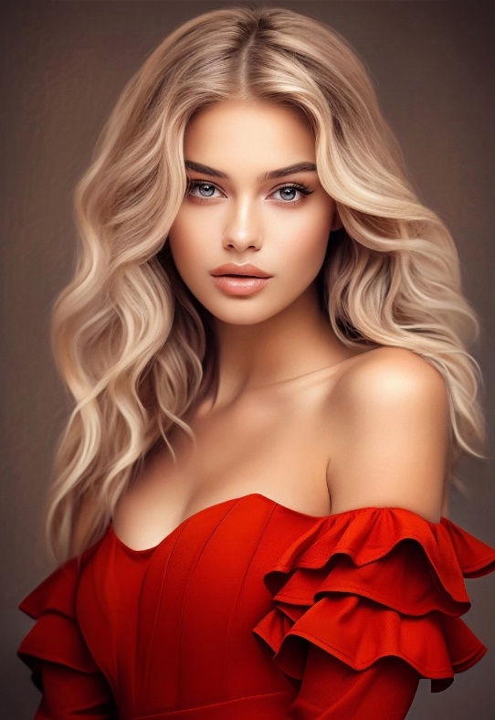 Золотистые локоны падали ей на плечи, в голубых глазах плещется счастье, на губах, едва тронутых помадой, играет улыбка.