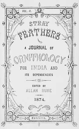 Title page of Stray Feathers, A Journal of Ornithology for India and its Dependencies, Allan Octavian Hume, Vol. 2, (1874).