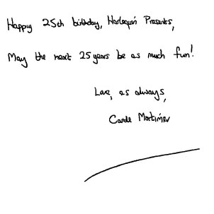 So, happy anniversary, Harlequin Presents®—and Ian, let’s do it again, all twenty-five years of it!