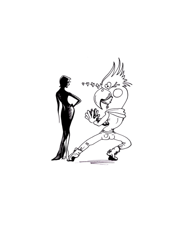 Прямо напротив меня висело зеркало: сквозь слезы я разглядел в нем силуэт красавицы. Рядом с ней, горделиво расставив ноги и сложив крылья на груди, стоял старый серый попугай. Его клюв покачивался из стороны в сторону. Один глаз попугая был закрыт, другой свирепо вращался. Не помню, как я выбежал из банка. Болели ноги. В глаза ударил крепкий мороз… Отрезвляющий, сильный мороз…