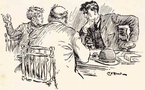 Он поручил приказчику присмотреть за лавкой, с трудом натянул на себя сюртук и вместе с Диком пошёл в нижнюю часть города. Вскоре, к великому изумлению адвоката, фамилия которого была Гаррисон, они явились в его контору с необыкновенным рассказом.