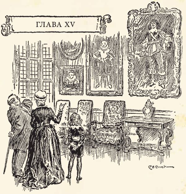 Он уселся на стул и с волнением стал рассматривать портреты. Наконец маленький лорд с трудом объяснил ему, что все те люди, портреты которых украшали стены, жили не в одно время и не были братьями и сёстрами.