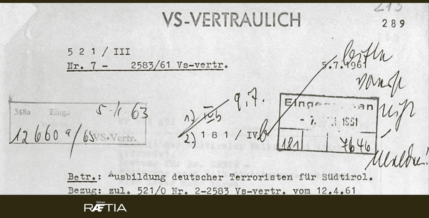 Abgerundet wird der erste Band durch die gründlich recherchierte Geschichte eines von den italienischen Diensten in Auftrag gegebenen Mordanschlags vom September 1964, bei dem ein Nordtiroler Journalist einen BAS-Aktivisten tötet, einen zweiten schwer verletzt. Dieser Fall wirkt bis heute fort, da die italienischen Behörden den Mörder noch immer decken.