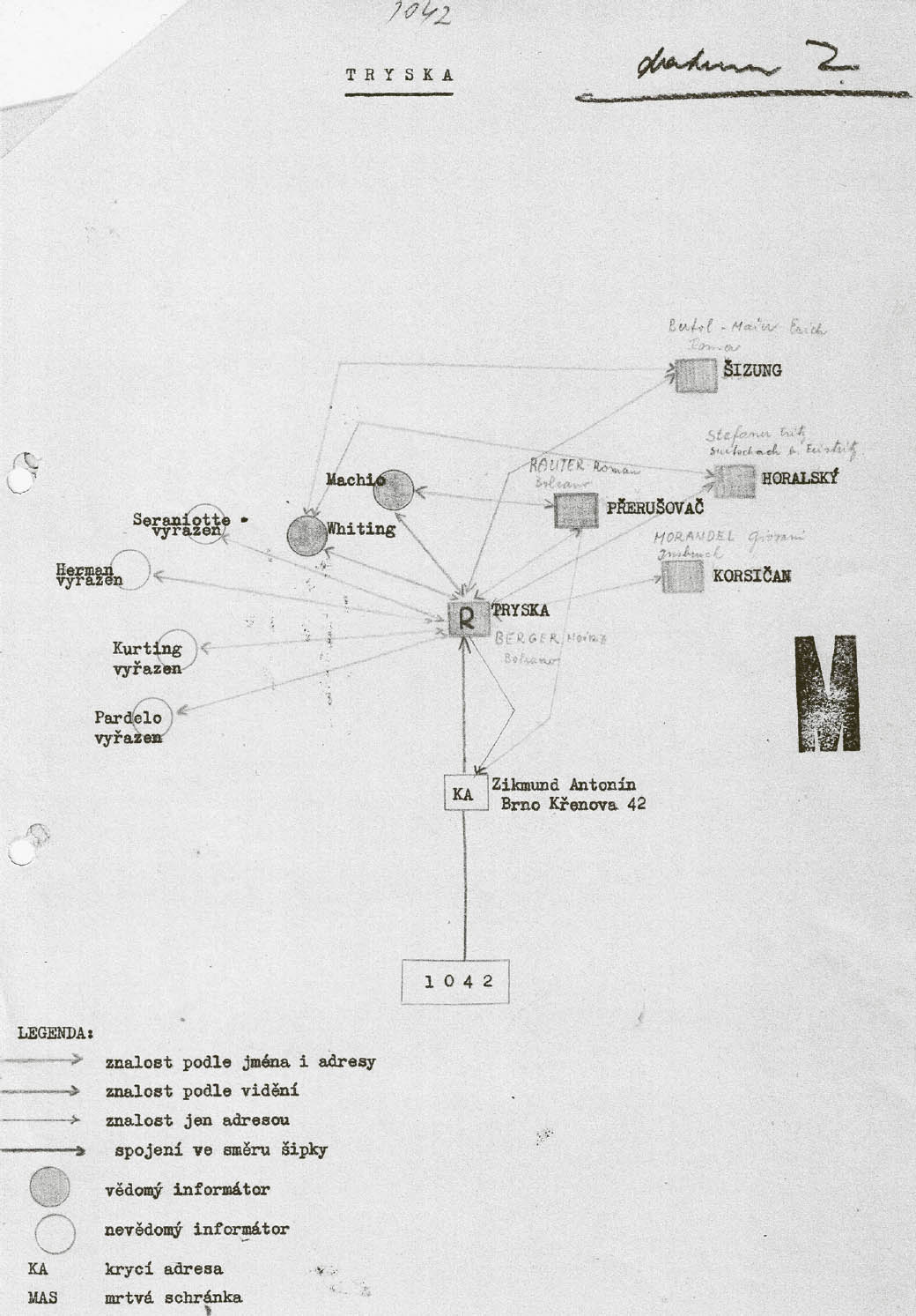 Er wurde verwarnt und es wurde ihm verboten in keinem Fall und aus keinem Grund nicht genehmigte Kontakte mit den Tschechoslowaken und deren Agenten zu unterhalten und genauso wenig Material zu übergeben, das von uns nicht vorab geprüft worden ist. Zudem habe ich von ihm einen vollständigen Bericht verlangt über alle Aktivitäten, die er ohne unser Wissen entfaltet hat. Ich gehe davon aus, dass diese Lektion ihren Sinn erfüllt und Uffreduzzi die Zusammenarbeit ehrlich weiterführen wird.84