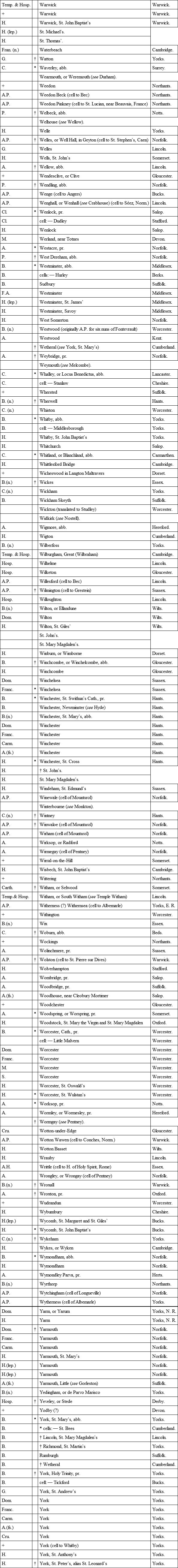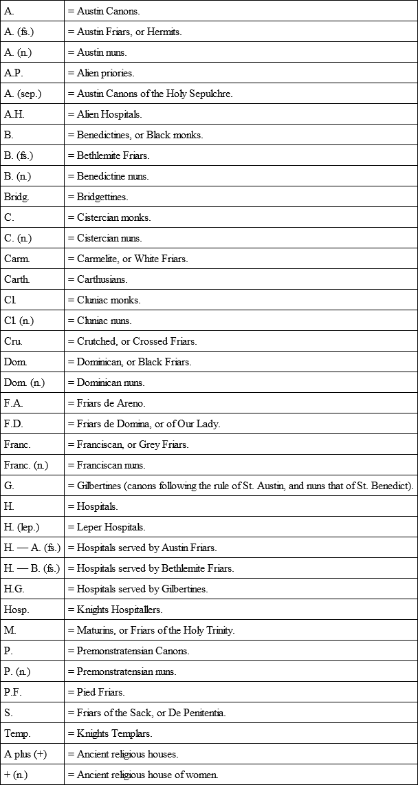 An asterisk (*) prefixed to a religious house signifies that there are considerable remains extant.