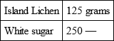 Steep the lichen, for twelve or fifteen hours, in a sufficient quantity of cold water, then drain the water. Boil the lichen in two liters of water, on a slow and continuous flame, until the two liters have dwindled to one, remove the scum once; then add the 250 grams of sugar and allow it to thicken to the consistency of syrup. Allow it to cool again. Take a large tablespoonful three times daily, morning, noon, and night. Do not be afraid to increase the dose, if the crises become too frequent.