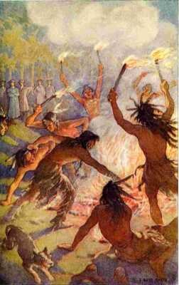 As those people are extreamly apt to get drunk, and, when so, are very quarrelsome and disorderly, we strictly forbad the selling any liquor to them; and when they complain'd of this restriction, we told them that if they would continue sober during the treaty, we would give them plenty of rum when business was over. They promis'd this, and they kept their promise, because they could get no liquor, and the treaty was conducted very orderly, and concluded to mutual satisfaction. They then claim'd and received the rum; this was in the afternoon: they were near one hundred men, women, and children, and were lodg'd in temporary cabins, built in the form of a square, just without the town. In the evening, hearing a great noise among them, the commissioners walk'd out to see what was the matter. We found they had made a great bonfire in the middle of the square; they were all drunk, men and women, quarreling and fighting. Their dark-colour'd bodies, half naked, seen only by the gloomy light of the bonfire, running after and beating one another with firebrands, accompanied by their horrid yellings, form'd a scene the most resembling our ideas of hell that could well be imagin'd; there was no appeasing the tumult, and we retired to our lodging. At midnight a number of them came thundering at our door, demanding more rum, of which we took no notice.