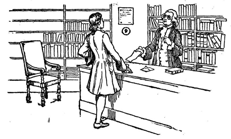 While I lodg'd in Little Britain, I made an acquaintance with one Wilcox, a bookseller, whose shop was at the next door. He had an immense collection of second-hand books. Circulating libraries were not then in use; but we agreed that, on certain reasonable terms, which I have now forgotten, I might take, read, and return any of his books. This I esteem'd a great advantage, and I made as much use of it as I could.