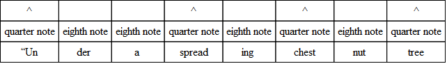 The commonest variation in verse is the substitution of three eighths for the quarter and the eighth, or the eighth and the quarter. And the very opposite of this often occurs; that is, the substitution of the two-syllable foot for the three-syllable foot. The following, from “The Burial of Sir John Moore,” illustrates what is done. Notice, however, that the beat is quite regular, and the lines lilt along as if there were no change.