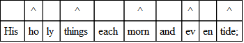 Again, the last foot of each line may be one syllable short. This may occur when the accent is on the first syllable of a foot; that is, when the foot is trochaic or dactylic. The scheme is like this: